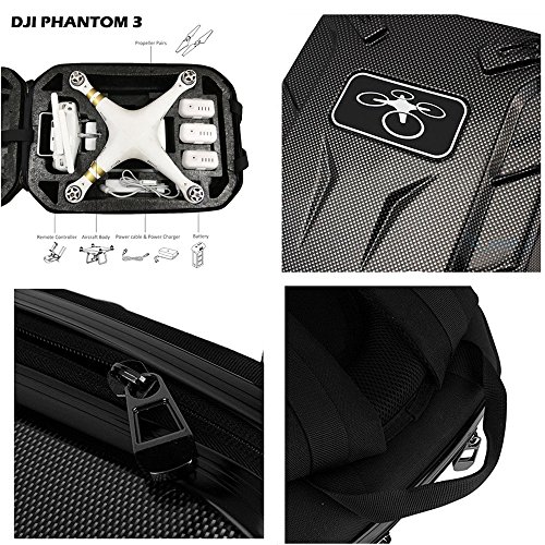 Capacity: DJI Phantom 3 x 1 DJI Phantom 3 remote controller x 1 DJI Phantom 3 Intelligent Flight Batteries x 3 DJI Phantom 3 propellers x 4 DJI Phantom series Battery Charger x 1
