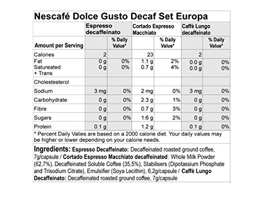 Espresso Decaffeinato: If you love an after dinner Espresso, you'll love new. Espresso Decaf. / Cortado Espresso Macchiato Decaffeinato: Espresso Cortado Decaffeinate - with a hint of milk foam. Fast, practical and very delicious. Full aroma but no caffeine. / Dolce Gusto. Caffè Lungo Decaffeinato. A stylish cup of full-bodied coffee with a rich aroma and a velvety crema layer. Literally a 'long coffee', Caffè Lungo Decaff is a 'stretched' espresso without all the caffeine. Instead of making a shot, enough hot water to fill a regular coffee cup (but not a mug) is passed through the roast and ground coffee. The result: a rich and smooth coffee that you can take your time over. Comes as individual capsules in plain box. 6x6x5 inch. Would make a perfect Gift for the chocolate lover! You may choose Gift Wrap at checkout! Stored, Packed & Shipped by Store! Eligible for Free Shipping!! Store Customer Service 24 x 7!! Use your prime account for free fast shipping! Track your delivery to your door or any door! Expedited Shipping available!