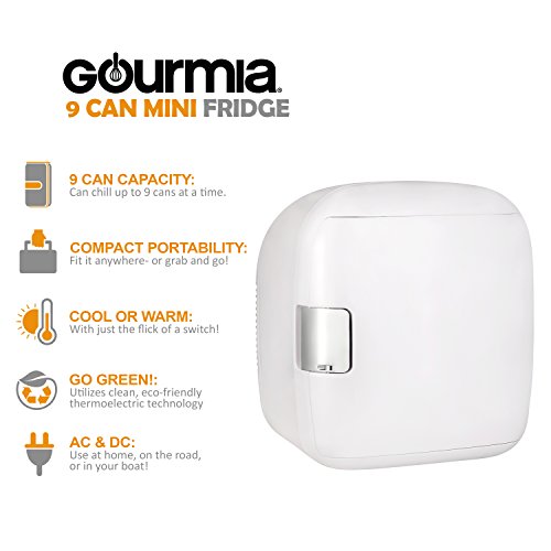 Grab and go! Tuck this handy mini fridge into any corner of your boat, cubicle, dorm room - or throw it in the backseat of your car! No matter where you find yourself, the lightweight Gourmia GMF900 Cooler and Warmer is effortless to take along for the ride. Designed for optimum convenience, all it takes is the flick of a switch to chill those soda cans up to 32°F below ambient temperature, or warm your food up to 150°F. The GMF900 utilizes the latest thermoelectric technology to ensure uncompromised functionality without harming the environment. It's time to take your office lunch, road-trip snacks, and tailgate beers to the next level!