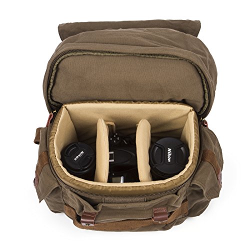 Removable padded camera compartment and divider set able to hold your camera gear , lenses, battery and other accessories .