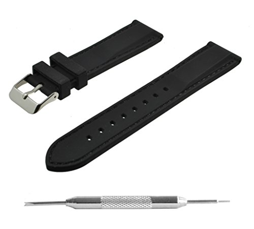 -. Title : Benchmark Straps 18, 20 & 22mm Black Silicone Rubber Watchband + Spring Bar Removal Tool (Black Stitching)