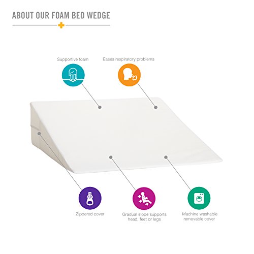 FOAM BED WEDGE ELEVATES YOUR HEAD to help relieve acid reflux, snoring, respiratory problems, neck and shoulder pain, and more. The gradual slope helps to comfortably raise your head into a better sleeping position.