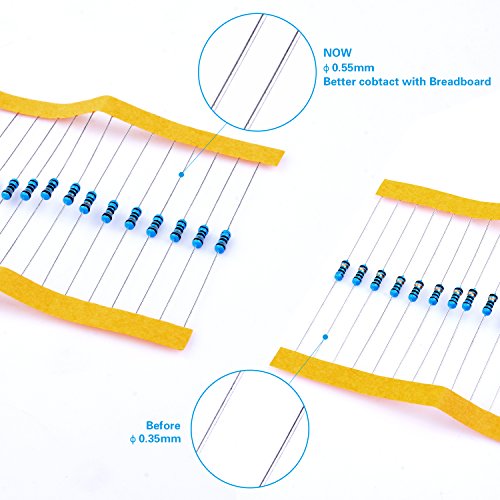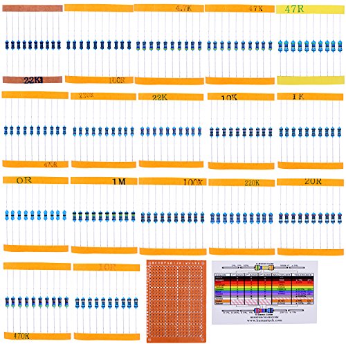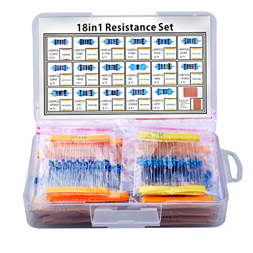 - Humanized design with 25pcs(0,10,20,47,470,2.2k,4.7k,22k,47k,100k,220k,470k,1M) and 50pcs(100,220,1k,10k) frequently used resistors.