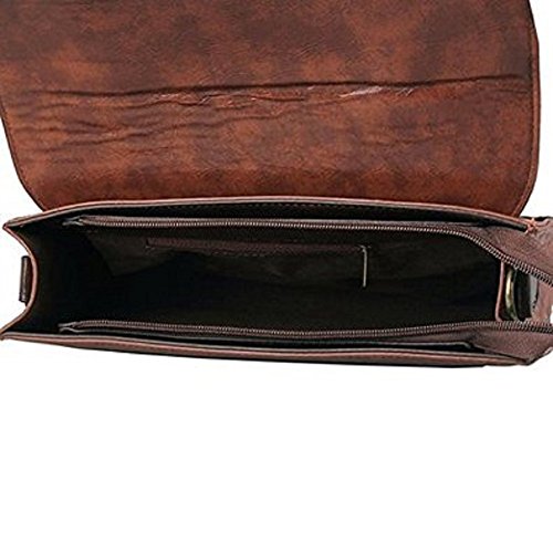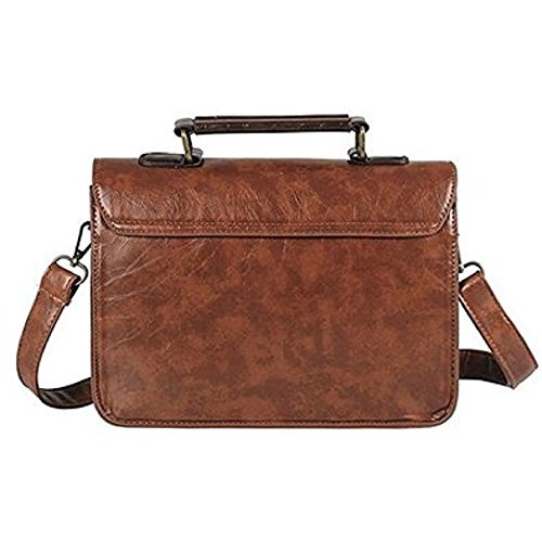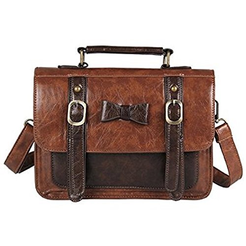 Title : WindFeel Vintage Messenger Bag for School- Satchel Bag -Bowknot, Magnetic Button and Zipper-for Women- Color Brown and Black PU Leather