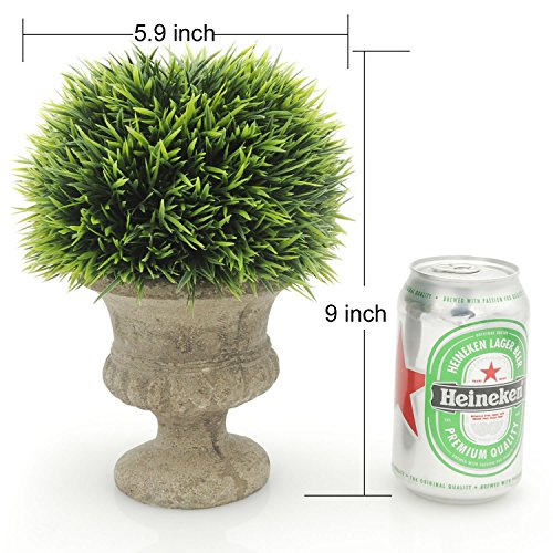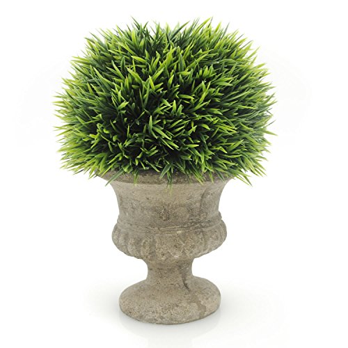 Velener Plastic Fake Green Grass of Plants with Trophy shape Vase for Home Decor