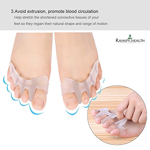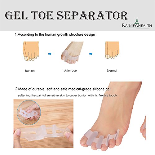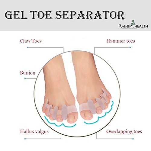 Care Instructions: --Wash them with hand gentley,Dry in the shade,Do not be exposed to the sun.Put some baby powder if they are sticky. --For the first time, you may feel a little uncomfortable, We suggest to wear for 15-20 minutes, then increase wearing time until you can comfortably wear our toe separators. Allow your feet having enough time to adapt them. Toe Separators are Ideal for: