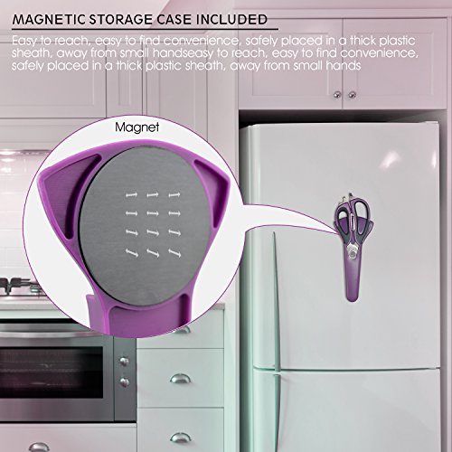 - MAGNETIC STORAGE CASE included for easy to reach, easy to find convenience, safely placed in a thick plastic sheath, away from small hands."The magnet on the holder is sufficiently strong enough to hold it and the scissors on my fridge even when I slam the door."
