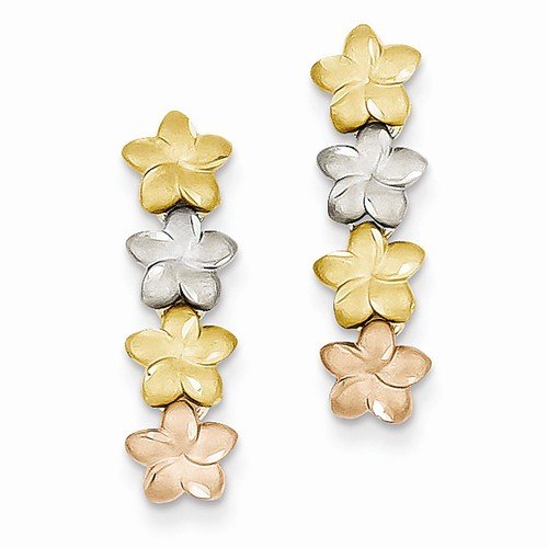 -. Title : 14K Three Tone Gold 0.8IN Long Plumeria Post Earrings