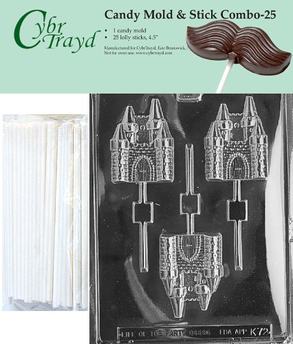 Cybrtrayd 45St25-K072 Castle Lolly Chocolate Candy Mold with 25 Cybrtrayd 4.5" Lollipop Sticks