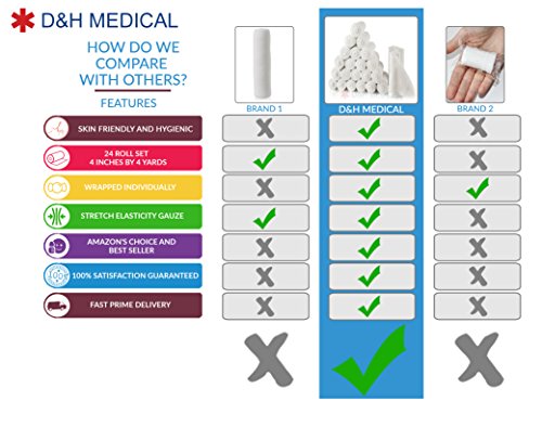 D&H Medical Gauze Stretch Bandage Roll Used For Wound Care Dressing 24 Bulk Pack 4 yds Length x 4 Inch Rolled Hand Wrap