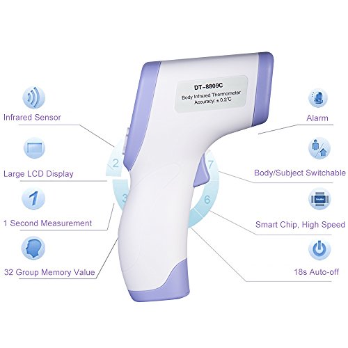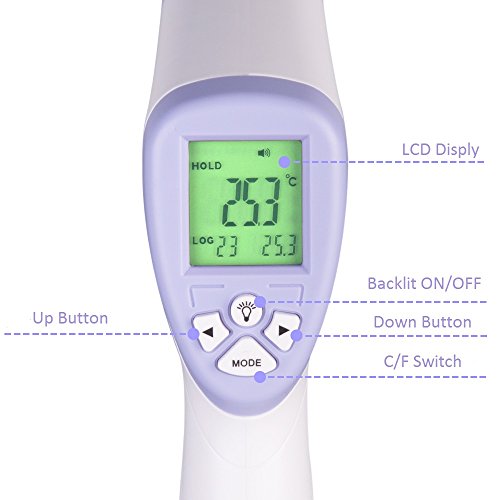 Reliable & Accurate: Built-in laser pointer and advanced detector, quickly response in 1 second and will beep when test finishing. Accuracy: ± 0.2C. Measurement from 89.6F to 109.4F.