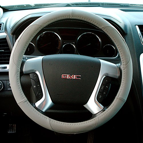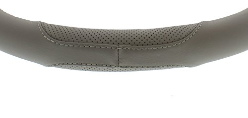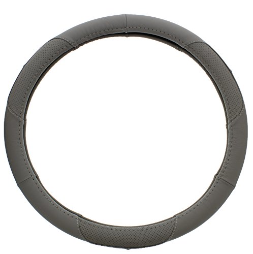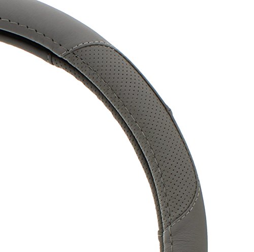 The ABN Grey Genuine Leather Luxury Steering Wheel Cover Wrap, 14.75 - 15" Universal Fit 15-Inch is easily installed by slipping over your steering wheel. The snug fit offers a stylish, trendy upgrade to your vehicle's steering wheel with its detailed wrap design. The cover is designed to fit all standard steering wheels 14.5" to 15" or 37-38cm in diameter. Not only stylish, the cover increases your grip for ultimate steering performance and control on the road. It protects your hands from the extreme heat and cold of the seasons. The cover is quickly wiped clean with a damp cloth. AutoBodyNow offers a wide variety of quality, affordable and colorful Genuine Leather and PVC Leather steering wheel wrap cover options so that you're guaranteed to find one that matches your style and needs. Easy Install Directions: use a hair dryer first to warm the steering wheel cover (up to 5 minutes, avoiding direct contact) to make the leather more pliable and easier to slip over your vehicle's steering wheel.Feature