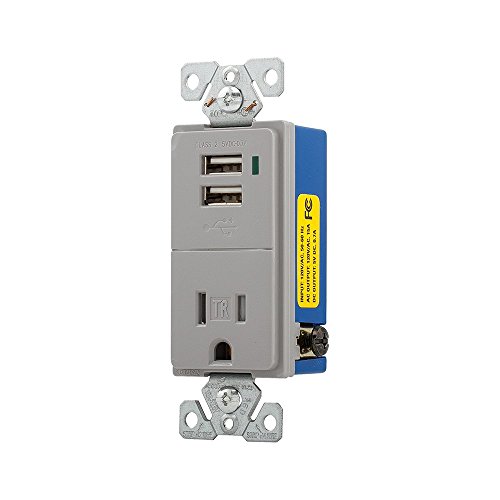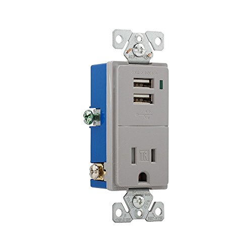 Eaton TR7740GY-BOX Combination Usb Charger with Tamper Resistant 15A 125V Receptacle, Gray,