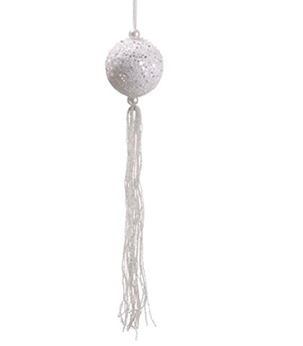 Allstate Winter Frost White Glitter Christmas Ball Ornament with Tassels and Beads, 12"