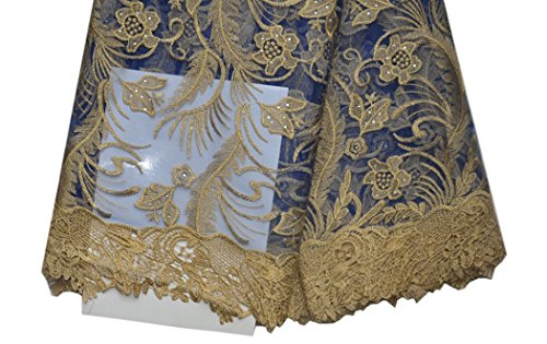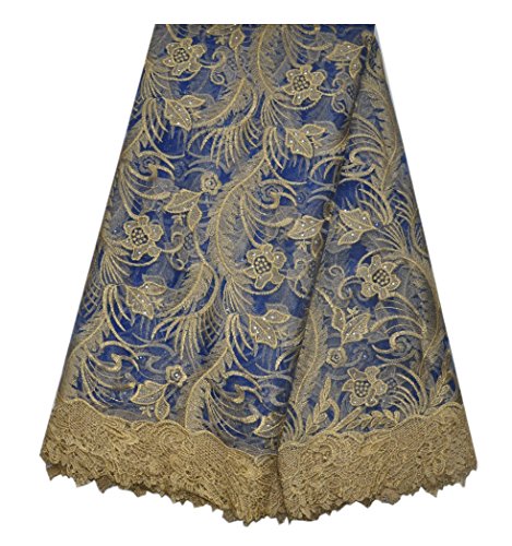 SanVera17 African Lace Net Fabrics Nigerian French Fabric Embroidered and Beading Guipure Cord Lace for Party Wedding (deep blue) 5 Yards us-fabric-004-10