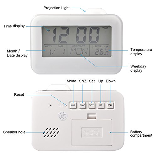 Package Included: 1 x Projection Alarm Clock(Battery not included) 1 x User Manual in English