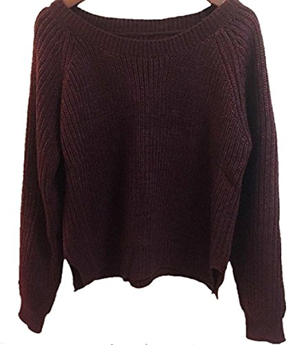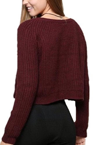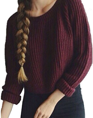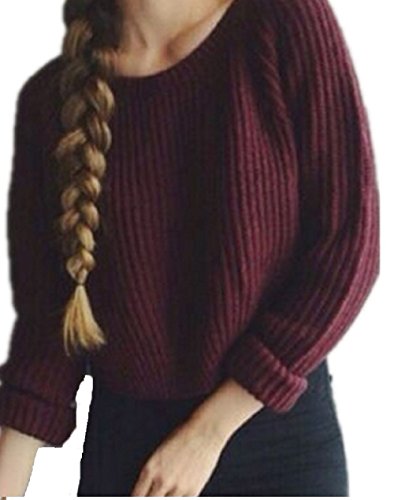 Women's Fashion Casual Long Sleeve Crew Neck Knit Sweater Pullover Crop Top