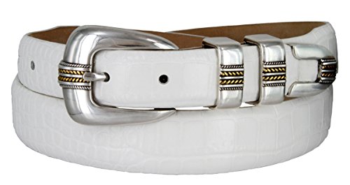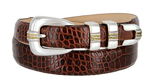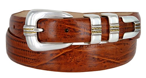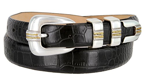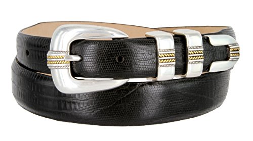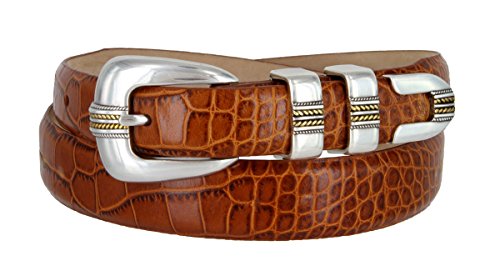 Product Description Our Norris Gold designer Dress and Golf belt is a popular design our customers love. Features our genuine Italian calfskin leather belt strap with your choice of color and print including Alligator,Lizard and Smooth, as well as our 4-piece Silver and Gold plated buckle set. A versatile belt that looks great when worn with dress pants, a golf outfit, or even with a nice pair of jeans. Belt is 1 1/8" (30mm) wide, and sizes range from 32" thru 54". 0