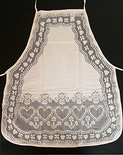 Fine Lace Apron with hearts and flower pattern. Adult size