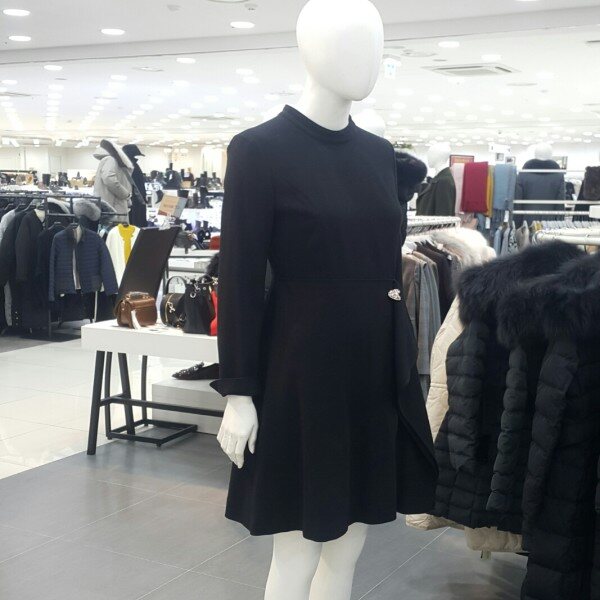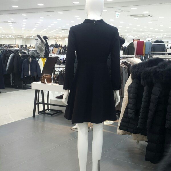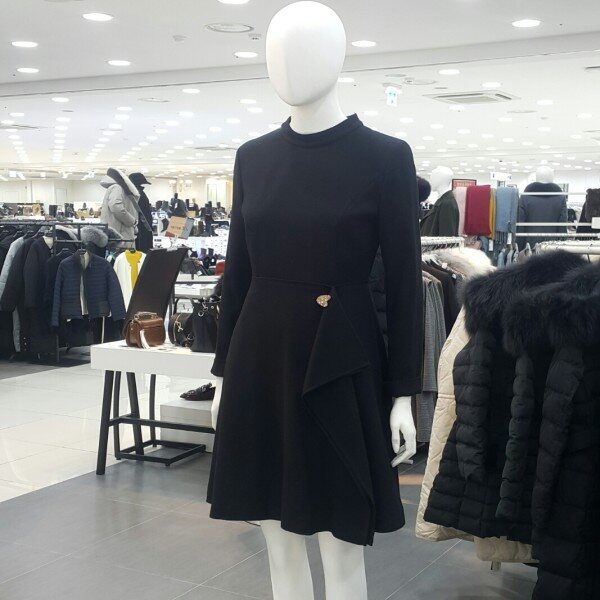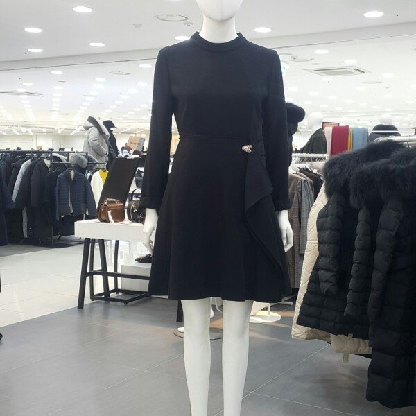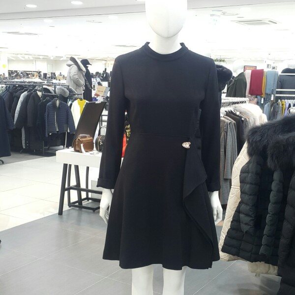기본하이넥라운드라인에 밑단은플레어스타일원피스입니다앞쪽 프릴이포인트되어편하게연출하기좋은아이템입니다