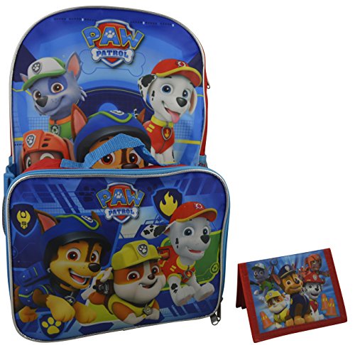 -. Brand : Nick Paw Patrol -. Color : Navy -. Department : boys -. Feature : Nickelodeon Paw Patrol Boys' 16" Backpack W/ Detachable Lunch Box Bonus Stationery. Bonus stationery to choose from Paw Patrol folder or Paw Patrol Pencil Pouch / Includes one backpack with detachable matching lunch box. Colorful design! perfect for school and vacations! Well known Nickelodeon Paw Patrol character in colorful stamping finishing that your child will love having with them. The perfect gift all year round! / Backpack Features one Main Compartment with zippered closure and Two side net Pockets.Features adjustable padded shoulder straps for additional comfort. Lunch box is easily strapped to the backpack.Backpack Dimensions (in inches): 16 x 12 x 5" / Made of an easy to clean and very durable 100% polyester. / BONUS stationery to choose from Paw Patrol folder or Paw Patrol Pencil Pouch -. PackageQuantity : 3 -. ProductGroup : Apparel -. ProductTypeName : LUGGAGE -. Size : Large -. Title : Nickelodeon Paw Patrol Boys' 16" Backpack W/ Detachable Lunch Box Bonus Stationery
