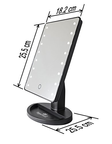 - Fold Away Stand Includes Large Storage Tray Organiser a great holder for all your jewellery, powder, brush and beauty Kit | TOUCH SENSITIVE ON/OFF CONTROL LED MIRROR | Right Size & Portable 360-degree free rotation for any position,plenty of adjustment available for horizontal or vertical orientation. So convenient to take with you to anywhere.