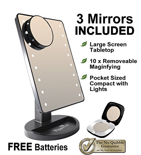 - INCLUDES 3 LIGHT UP MIRROR MAKEUP MIRRORS - 2 LED Light Up Mirror (one large & one compact) and a 10x Magnifying Mirror. Designer Presentation or Gift Box. | Perfect gift It's best gift for ladies and girls in Halloween, Christmas, New Year, Valetine's Day, Mother's Day, Birthday, Party, Performance, Special occasions