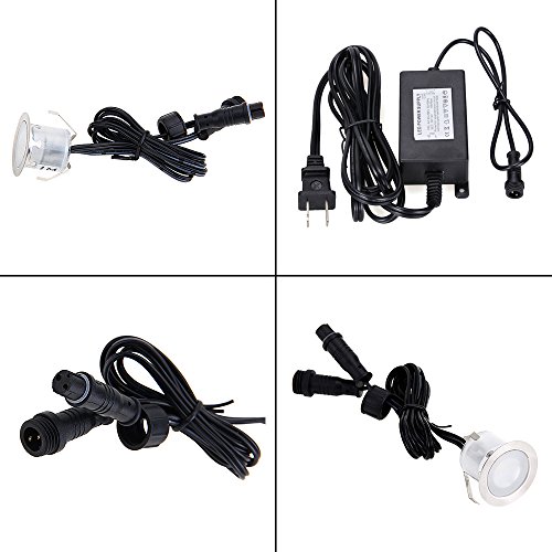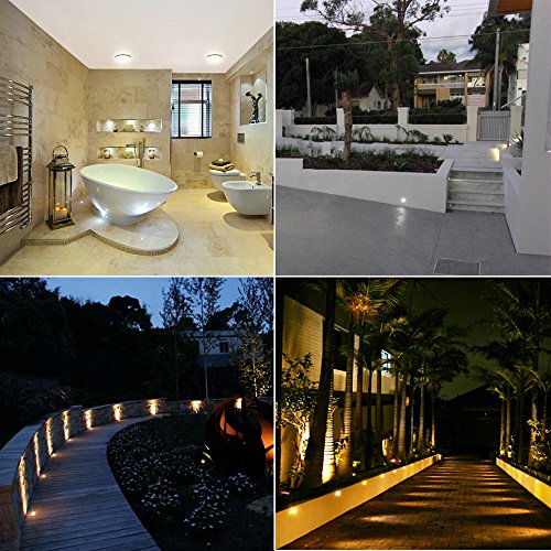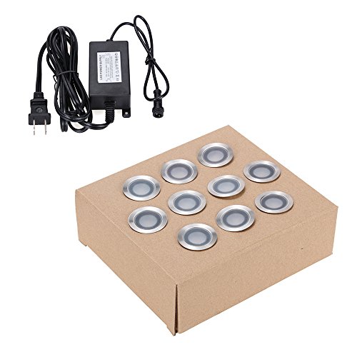 LED Deck Lights Kit , Low Voltage White Stainless Steel IP 67 Waterproof - Recessed Wood Decking Stairs Garden Yard Patio Decor Lamp Outdoor LED Lighting , Pack of 10
