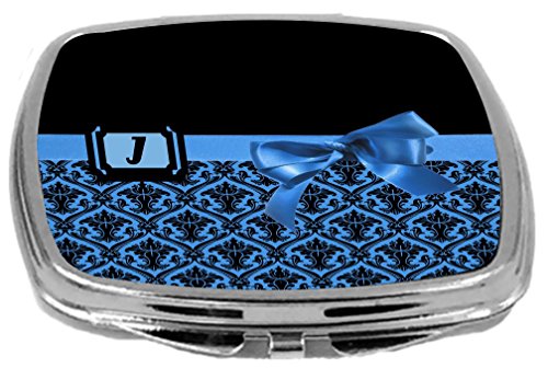 Rikki Knight Letter-J Monogram Damask Bow Design Compact Mirror, Blue, 2 Ounce