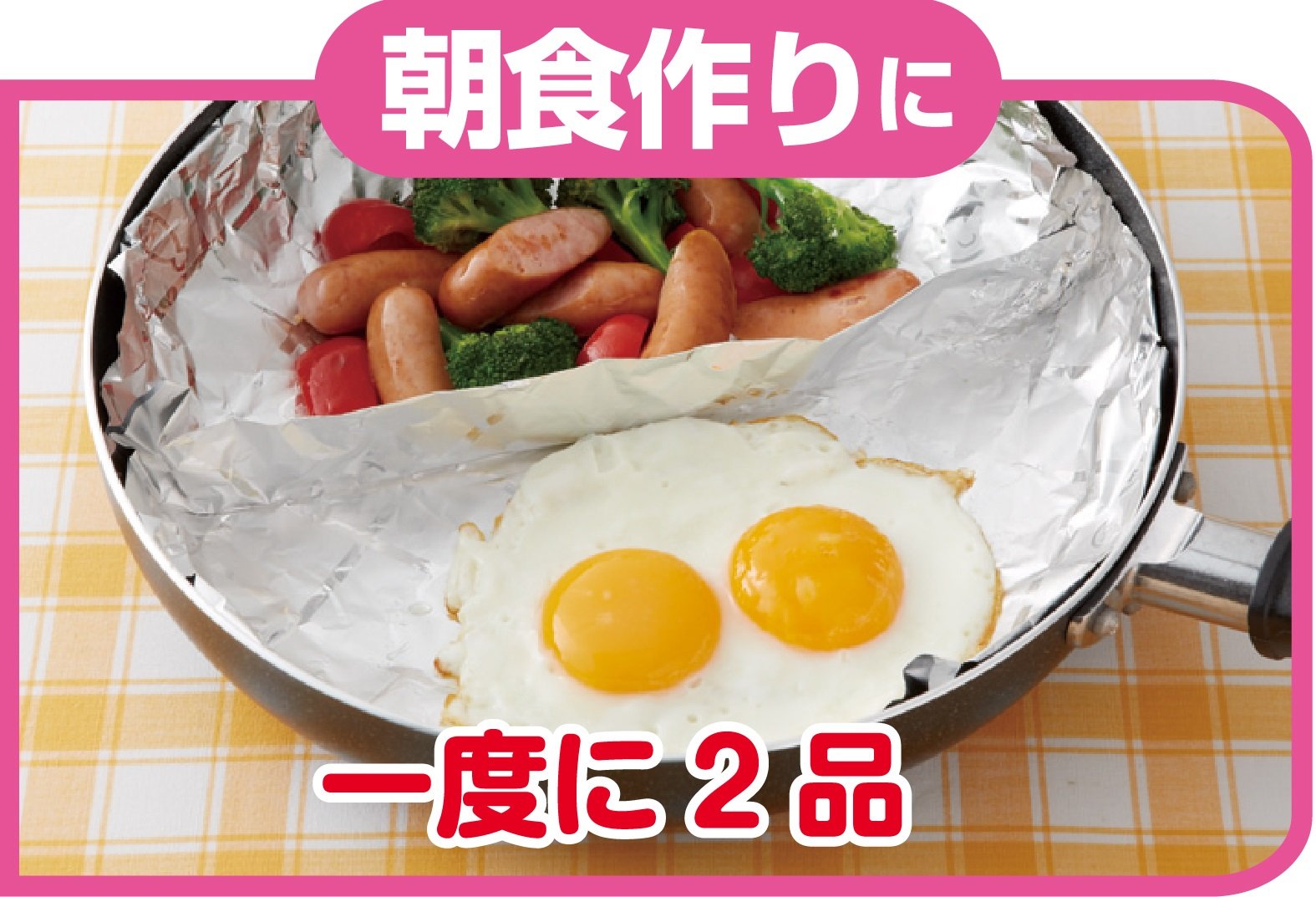 If you divide the frying pan with a foil sheet, you can bake 2 items at the same time.