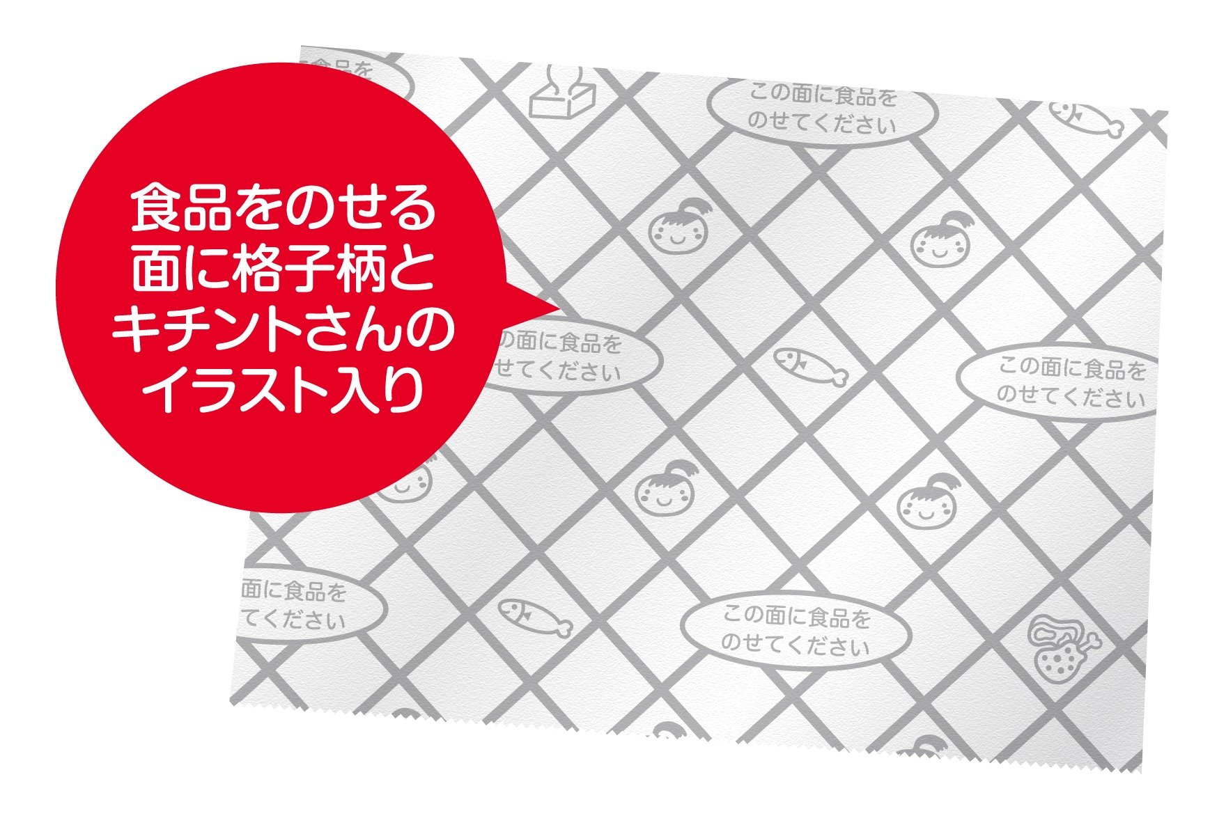 I put illustration of Mr. Kitcint on the entire side where foods can be put on for easy understanding of the back · table! As silicone resin processing is applied to one side, the ingredients do not cling and the dish is finished neatly.