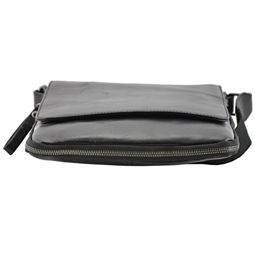 Product Description Genuine Leather Crossbody Man Bag - Jaime 100% genuine Italian Leather man bag. Linear design, very practical and modern, perfect for those who wish to carry the essential with them. Outside - 100% genuine Italian leather - main compartment with flap and zip closure - back pocket with zip closure - adjustable leather and fabric shoulder strap - metal details Inside - synthetic fabric lining - suede flap interior - pockets under the flap - inner pocket with zip closure External Dimensions 23 x 2 x 27 cm Weight 0.9 Kg 0