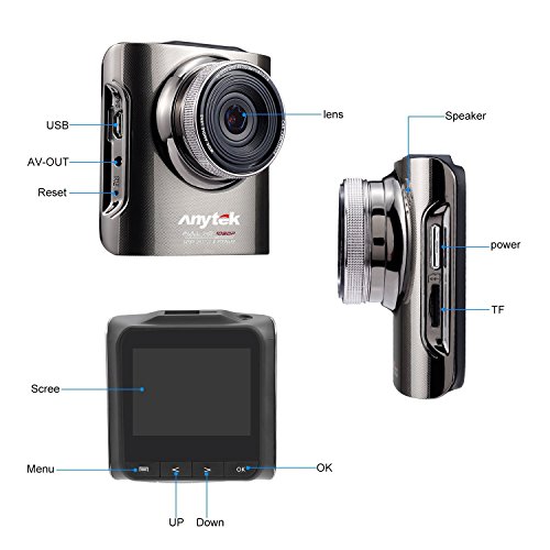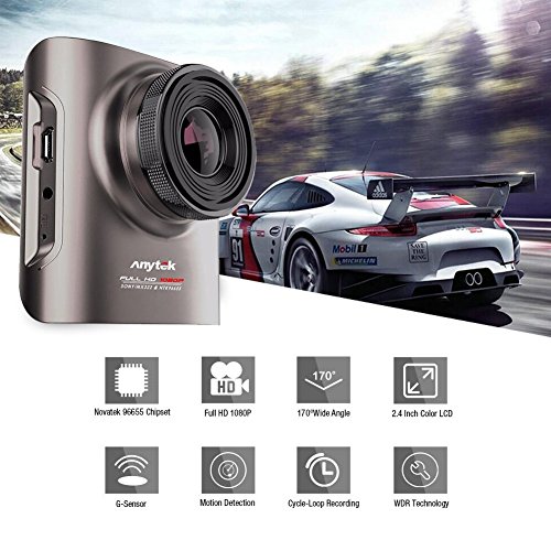 Car Dash Cam, Anytek Dashboard Camera Recorder with 2.3" LCD Screen Full HD 1920 x 1080, 170 Degree Wide Angle Lens, G-Sensor, WDR, Loop Recording, Brown