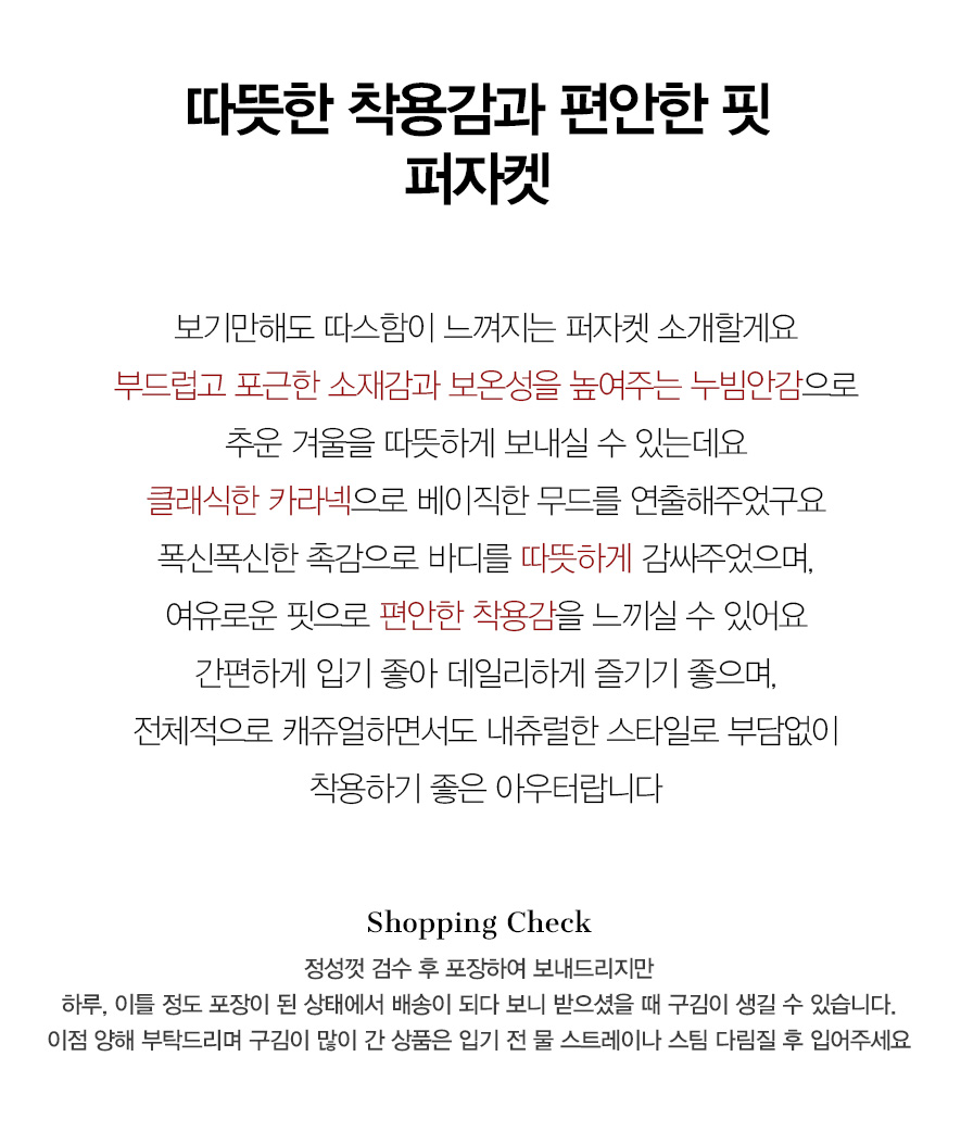 | 퍼탈부착(Detachable fur) | 불가능 |
