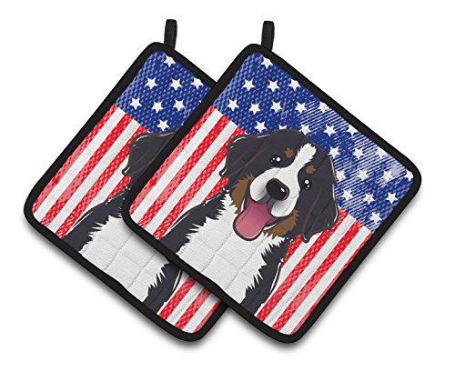 Caroline's Treasures American Flag & Bernese Mountain Dog Pair of Pot Holders BB2167PTHD, 7.5HX7.5W, Multicolor
