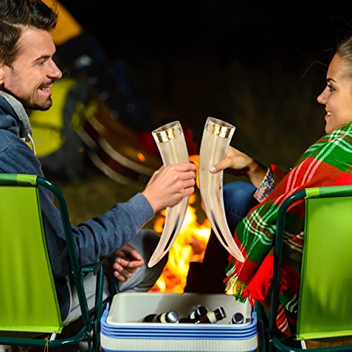 Studio : Nordic Publisher : Nordic Product Description Enjoy your finest drinks from your horn, which we have sealed and cleaned with water from the Fountain of Fairies.* Your horn's all natural components pleases the Gods by avoiding devilish chemicals. Maidens and peasants alike will stare in awe, as you will be able to proudly hold and display your hunting prize to admirers. Iron forged by the will of the gods into a stand fit for warriors. Your horn is designed to guardd your lips from wounds and keeps them ready for horn blowing. The engraved brass lip keeps your mouth ready for war cries. It also ready for battle, as it leaves your hands free to let you wrestle the bears without spilling your beer. Your horn's belt leather holder takes your horn wherever you go. No design will be the same. Each horn has a unique handcrafted design passed down through centuries of the Viking's master craftsmen. *Note: even the purest water seal from the Queen Fairy's Fountain herself will not protect against accumulations of water. After cleansing, make sure you dry your horn upside down to allow ALL water to evaporate. 0