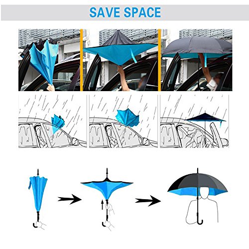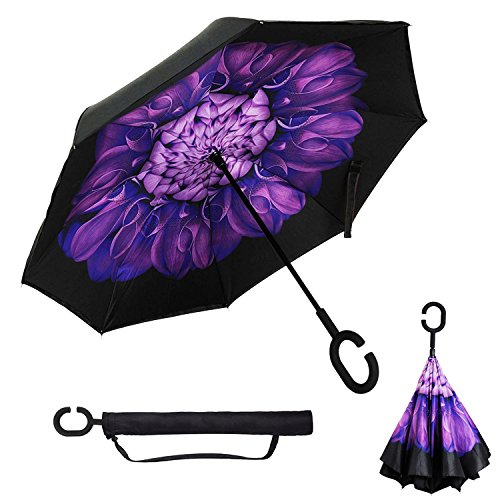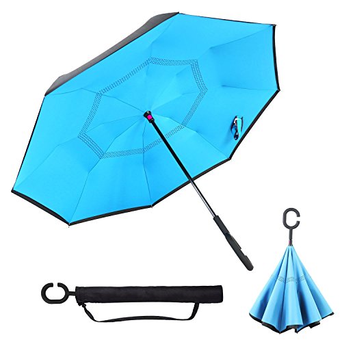 -. Title : Mobarta Inverted Umbrella Double Layer Reverse Umbrella for Car and Outdoor Use Windproof UV Rain Protection Car Reverse Umbrellas with C-shaped Handle and Carrying Bag