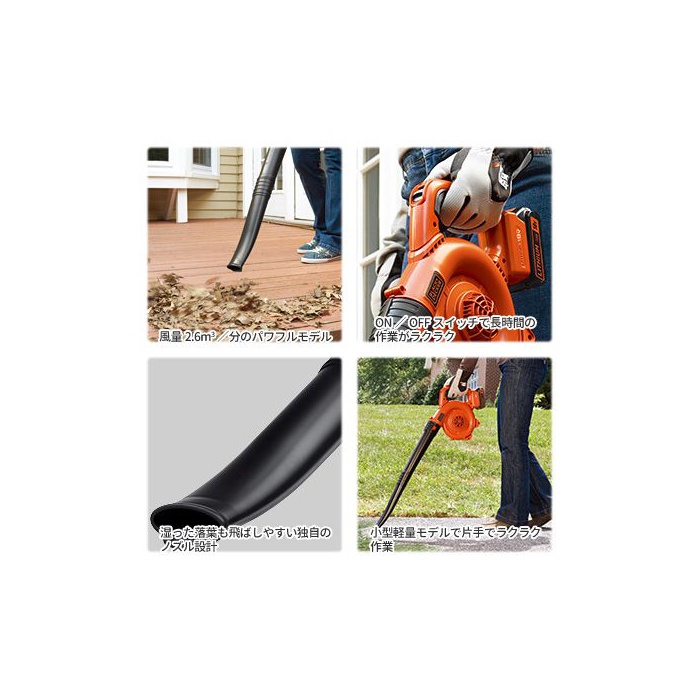 원본상품명:ブラック&デッカ? ガ?デンブロワ?(本?のみ) ブラック×オレンジ (GWC1800LBN-JP) BLACK&DECKER 電動式ブロワバキュ?ム 充電式ブロワ?