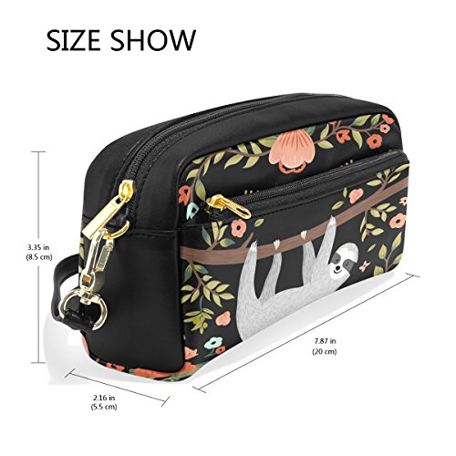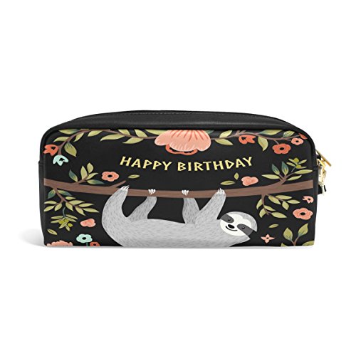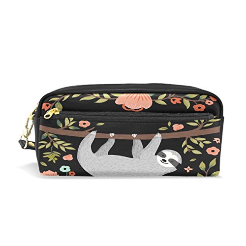 MRMIAN PU Leather Funny Animal Cute Sloth Pen Pencil Case Bag Purse Pouch Cosmetic Bag Zipper for School Boy Girl Office Work