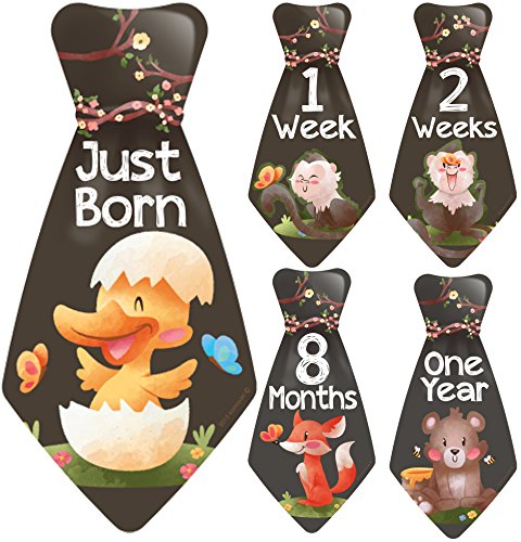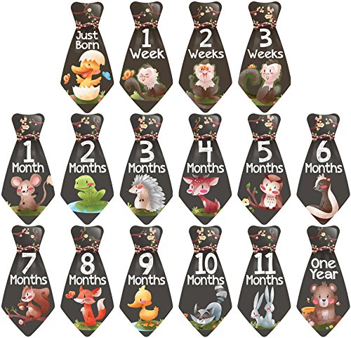 -. Title : Super Sale! Original Stick'Nsnap (TM) 16 Baby Monthly Necktie Onesie Stickers - "Happy Forest Animals" (TM). Milestones for 12 Months +4 bonus Milestones - Best Baby Shower Gifts!