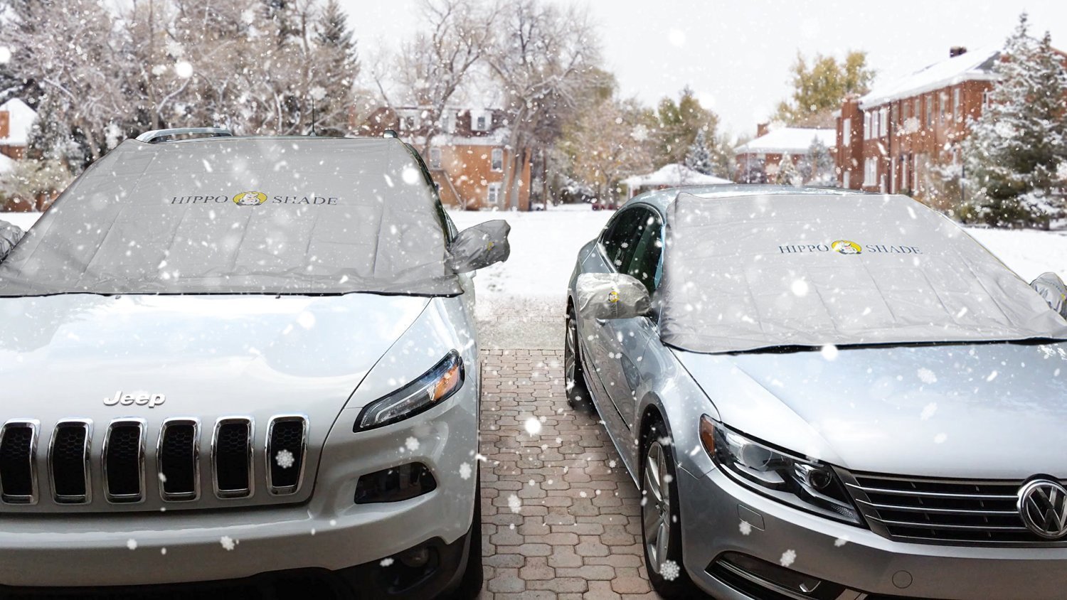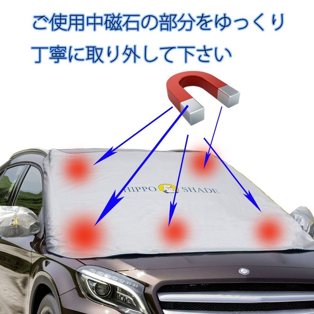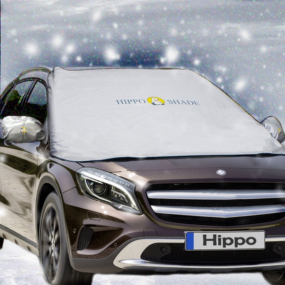 Hippo (Hippo) windscreen cover measures against freezing windshields and side mirrors of cars due to frost and snow in winter.