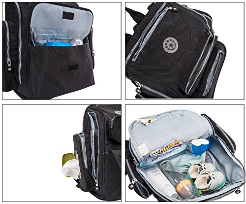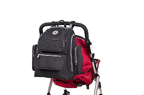 1. Extra roomy main compartment with over 12 multipe exterior and interior pockets, Reliable zip-top closure. 2. This backbag also come with the stroller attachment. It easily Hangs on a stroller for busy mom on the go.