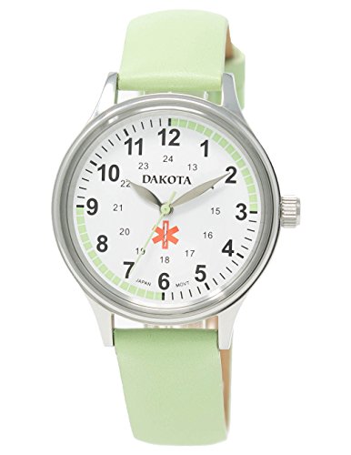 Quality Dakota midsize nurse watch. This watch features: * military dial * 15 second quadrant pulse ring * genuine leather strap * 165 feet water resistant *easy to read numbers * face measures 1.25" In diameter * total length of watch is 8" *quartz movement * stainless steel back.Feature