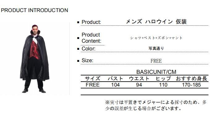 内容物:(4点)シャツ、ズボン、ベスト、マント素材:ポリエステルカラー:写真通り入金確認後、3-5営業日間以内の出荷となります。万が一ご出荷が遅れる場合はメールでご連絡致します。発送後到着まで約2-3日間程度かかります。サイズは、実寸を測っているため多少の誤差はございます。実商品とPC画面では、多少見た目の色に違いがございます。初期不良の場合、未使用の商品のみ到着日から7日以内にご連絡頂ければご返金、交換対応させて頂きます。●商品が到着しましたら、必ず中の商品を確認していただき、商品の到着後、3-4日間以内に必ず弊社までご連絡ください。★いかなる理由であってもご使用後の返品交換は承れません。