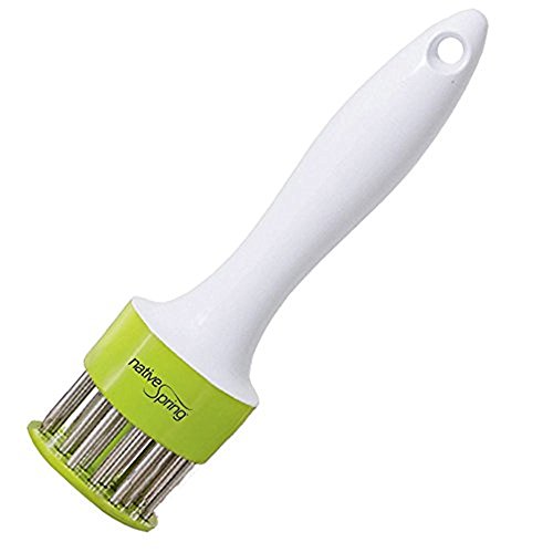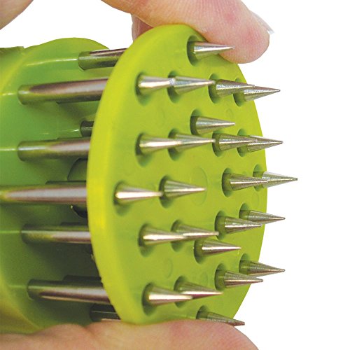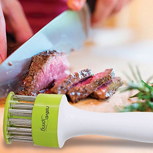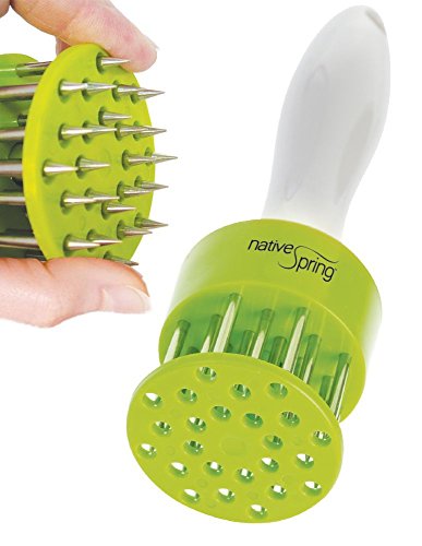 -. Brand : Native SP.R.Ing -. Color : Green -. EAN : 0850195007045 -. Feature : Premium quality prongs penetrate and provide a pathway for marinades to be absorbed deeper into the meat. / Designed perfectly to ensure safety when left unattended in the kitchen and is very sturdy for long-term use. / The needle point ends reduce shrinkage and cut through the meat fiber leaving irresistible juicy masterpiece pockets of flavor, and helps cut down on cooking time. / This versatile, handheld, manual multi-blade ergonomic gadget gives you more tenderizing options for creating delicious and nutritious dishes for your family and friends. / Easy to clean - dishwasher safe and user friendly, allowing you to maximize your time after cooking. -. Label : Native SP.R.Ing -. Manufacturer : Native SP.R.Ing -. Model : MT-100 -. MPN : MT-100 -. PackageQuantity : 1 -. PartNumber : MT-100 -. ProductGroup : Kitchen -. ProductTypeName : KITCHEN -. Publisher : Native SP.R.Ing -. Studio : Native SP.R.Ing -. Title : Native SP.R.Ing Professional Kitchen Meat Tenderizer Tool with 24 Sharp Stainless Steel Blades Perfect for Barbeques Grilling and Marinating -. UPC : 850195007045