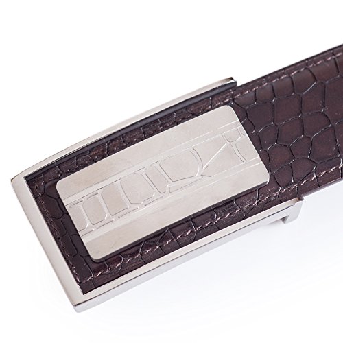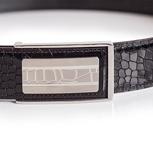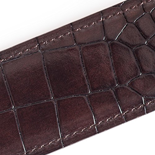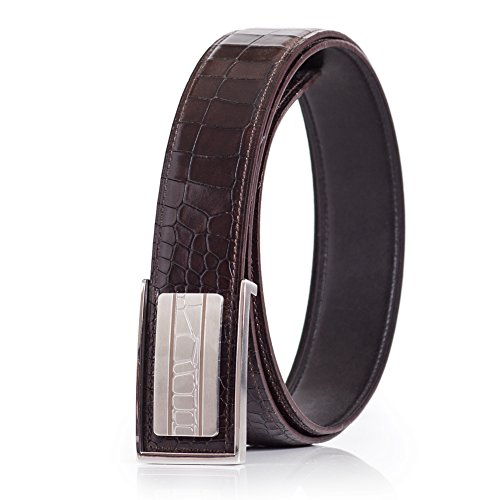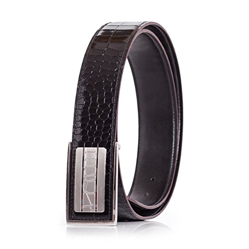 Product Description Stylish men's dress belt with alligator embossing. The belt has triple layer elevated construction using top grain calfskin leather outer and sanded calfskin for the inner layer. This suit belt features a stainless steep buckle with alligator-like pattern in the front. 0