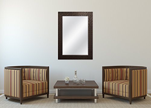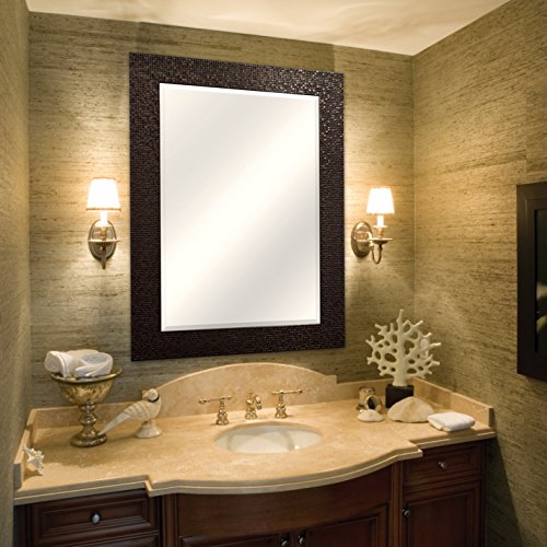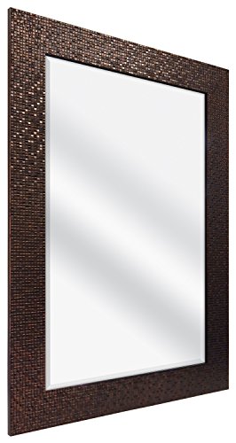 The MCS 24 inch by 36 inch deluxe series of fashion mirrors are framed with classic moldings with foil finishes. The overall size of the mirror measures 32 inches by 44 inches and can be hung horizontally or vertically. The mirror itself is 24 inches by 36 inches with a 1 inch bevel. Very nice styling fit for bedroom, bath, or living room. The heavy duty hangers are already mounted to the back of the mirror. Model 47703 has a 3 inch wide frame molding with a bronze grid design.Feature