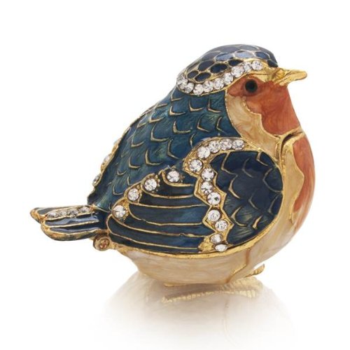 Welforth Fine Pewter Bejeweled Blue Orange Bird Trinket Small Box