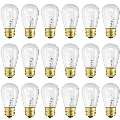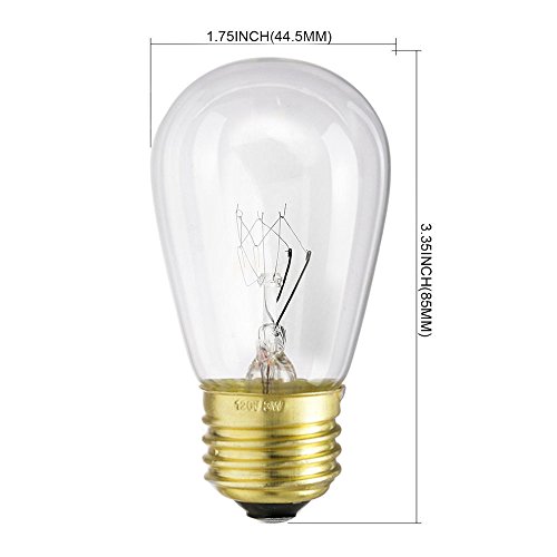 S14 Incandescent Light Bulbs, 11 Watts Warm White, E26 Medium Candelabra Screw Base Light Bubs for Commercial Grade Outdoor Patio Vintage String Lights