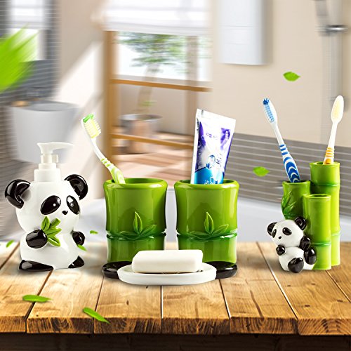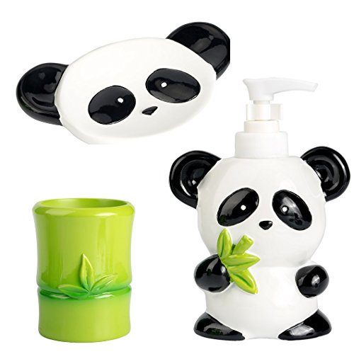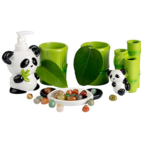 ECO-FRIENDLY AND DURABLE: Panda Bear Made from tough eco-friendly resin this bathroom accessory set is durable, high quality, and not harmful. All materials have been approved by California CP65.